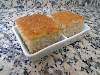 Jugoso bizcocho de coco y limón empapado con un almíbar ligero